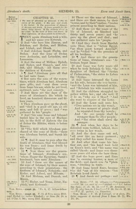 Here’s what Genesis 25 looks like in the 1888 Variorum Reference Bible: